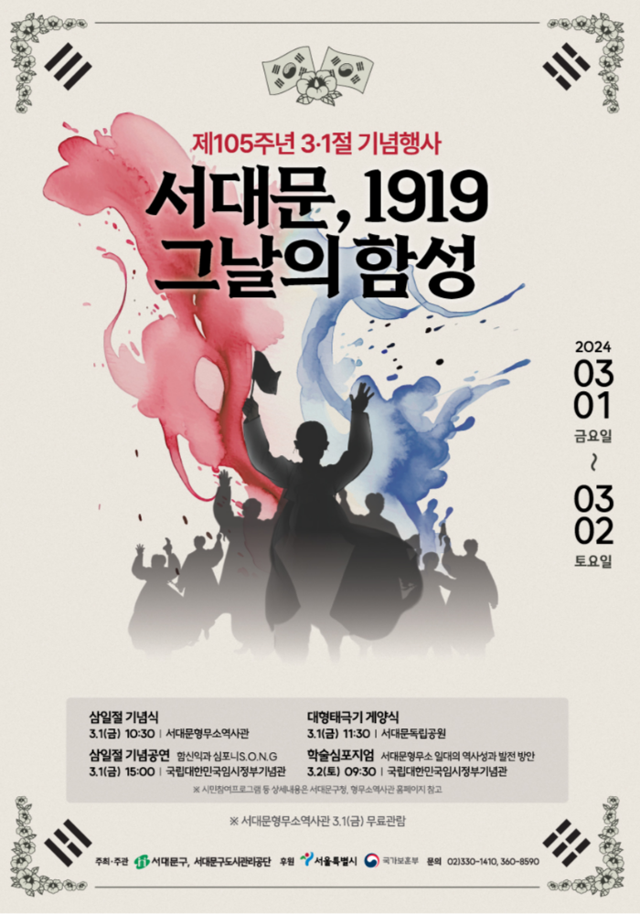 서대문 형무소에서 제 105주년 3.1절을 맞이하여 애국지사 및 순국선열이 추구한 자유와 평화의 가치를 시민들과 공유할 수 있는 행사와 체험 프로그램을 준비했다고 하여 알아봤습니다